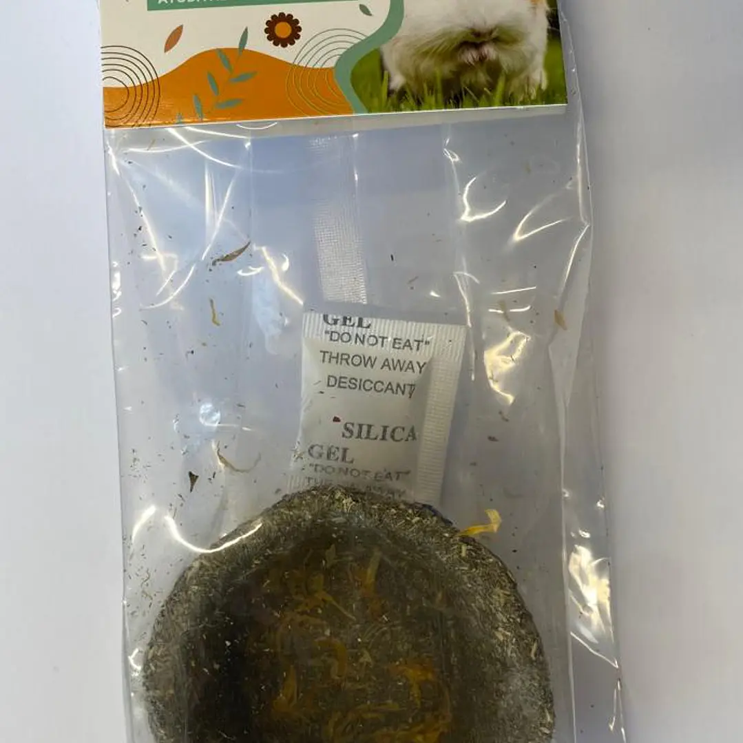 Viruta de madera, almidón de tapioca, glicerina, alginato de sodio, pétalos de rosa, pétalos de caléndula, pétalos de aciano, romero.