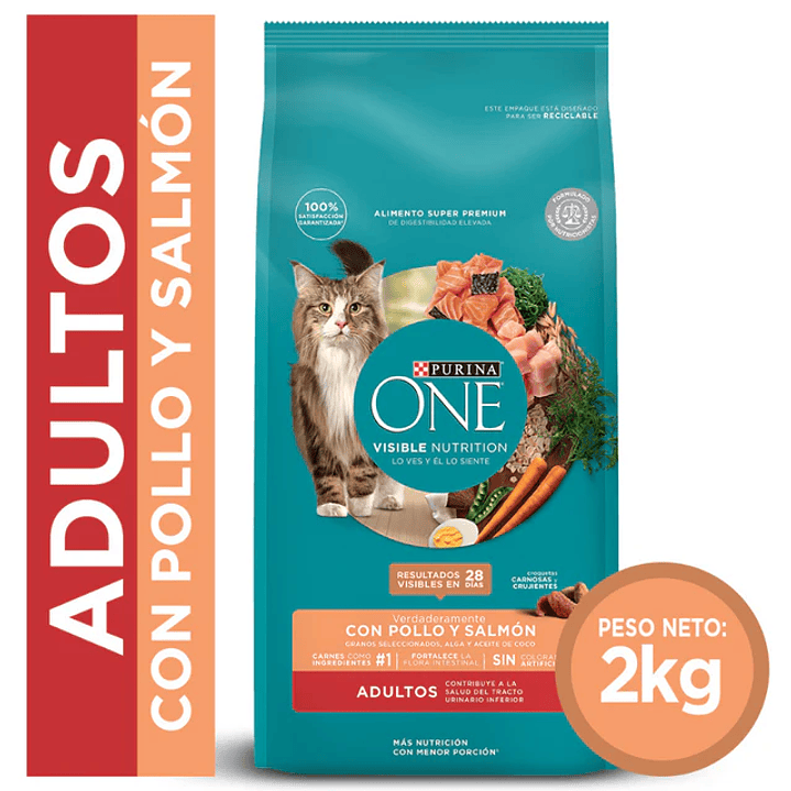 Este producto no solo apoya la salud digestiva, sino que también contribuye a la salud del tracto urinario inferior de tu gato. Con resultados visibles en solo 28 días y sin colorantes artificiales, PURINA® ONE® es la opción ideal para mantener a tu gato saludable y feliz.